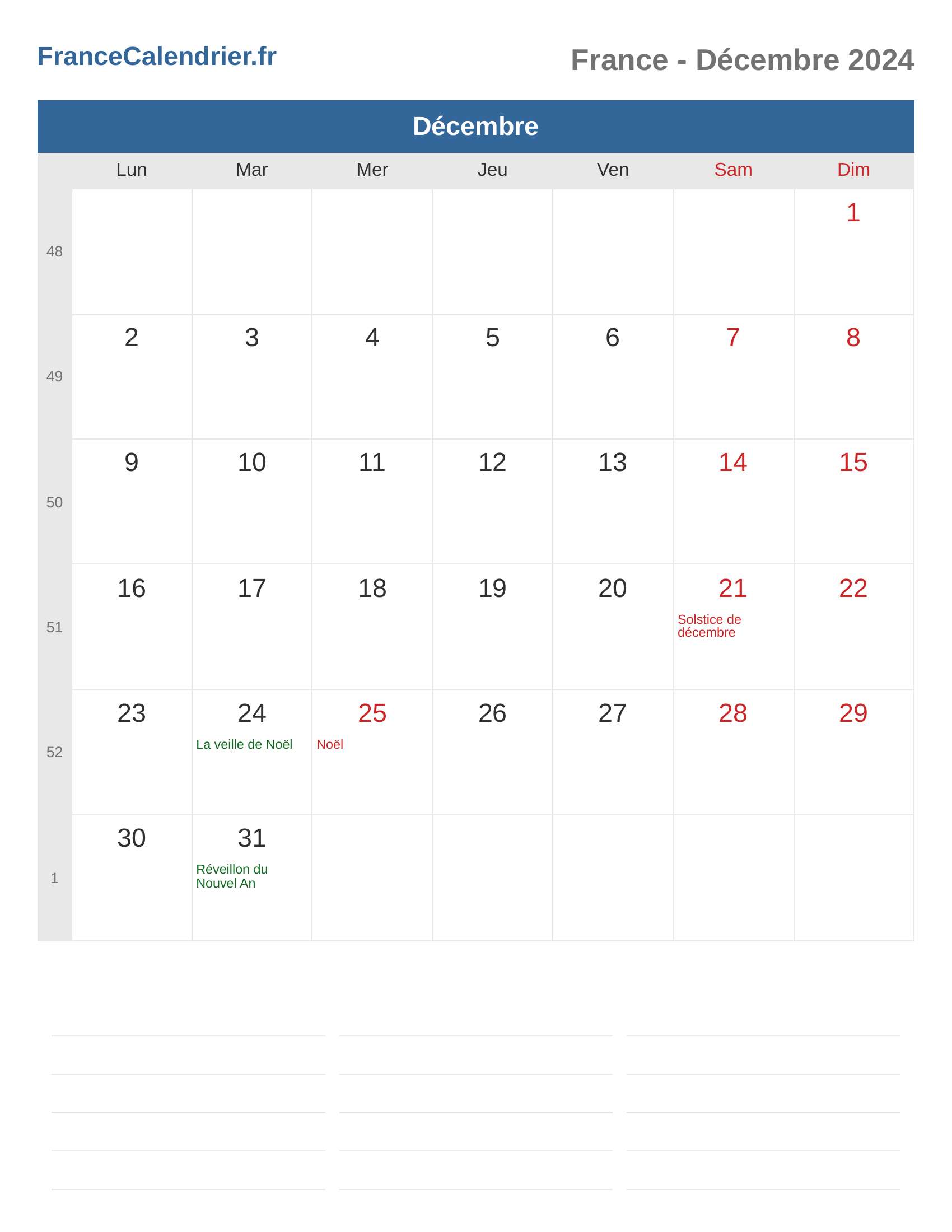 Calendrier Décembre 2024 - France