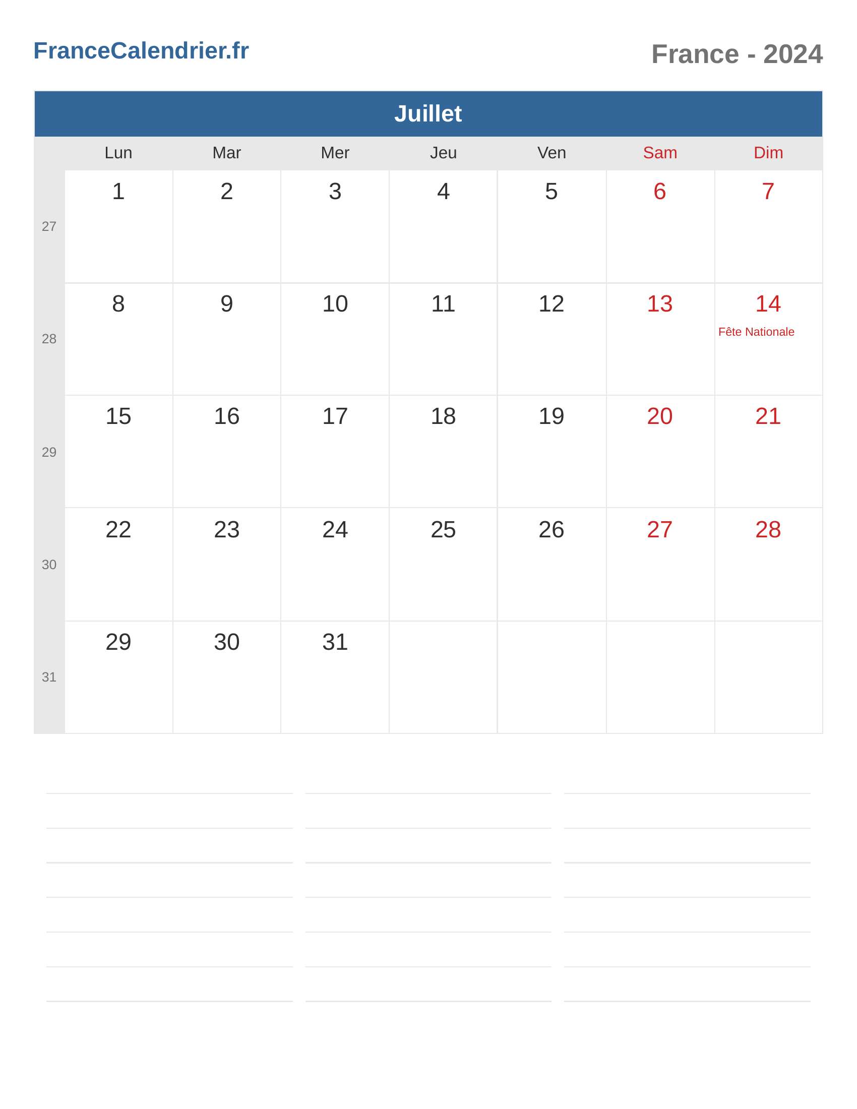 Calendrier du France 2024 - Juillet