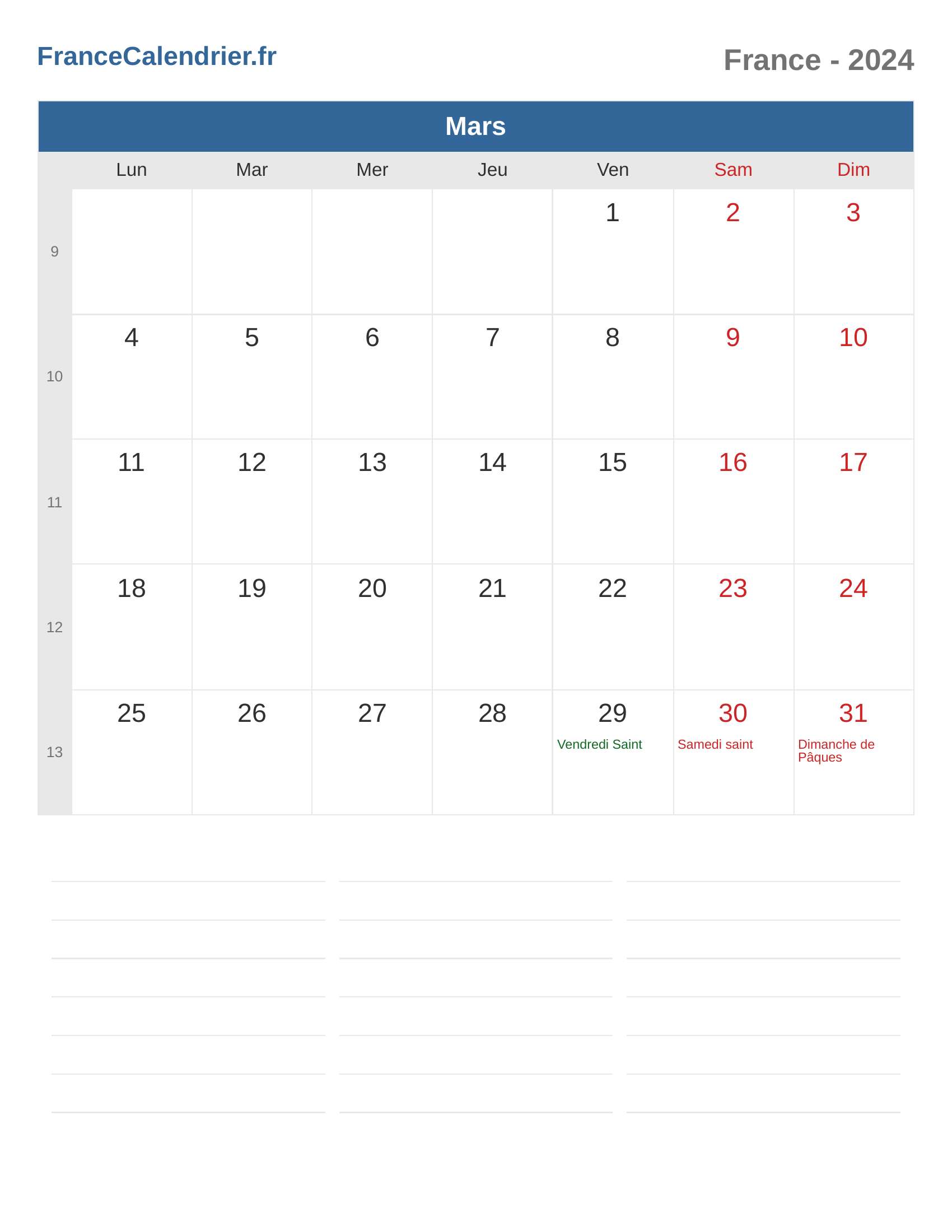 Calendrier du France 2024 - Mars