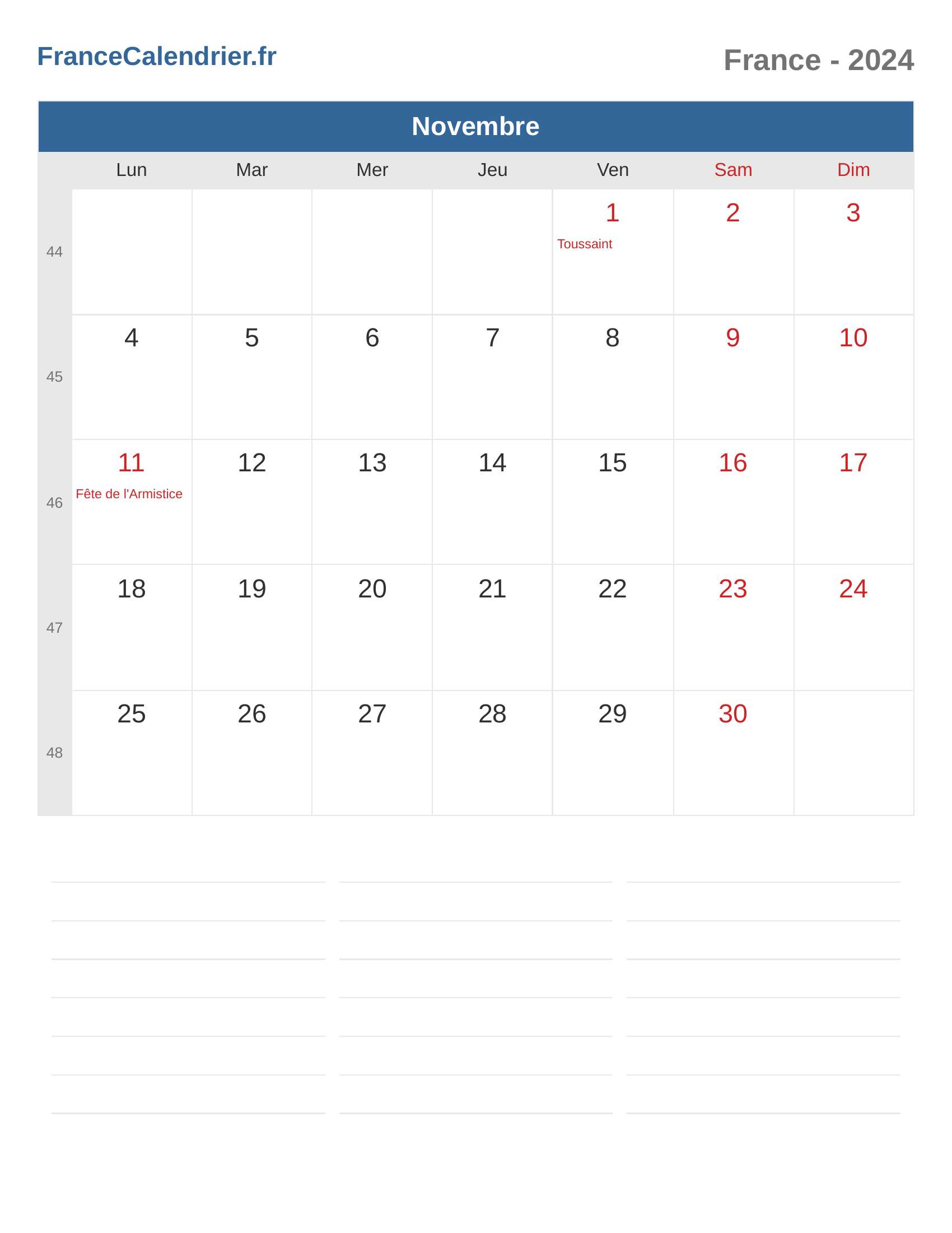 Calendrier du France 2024 - Novembre
