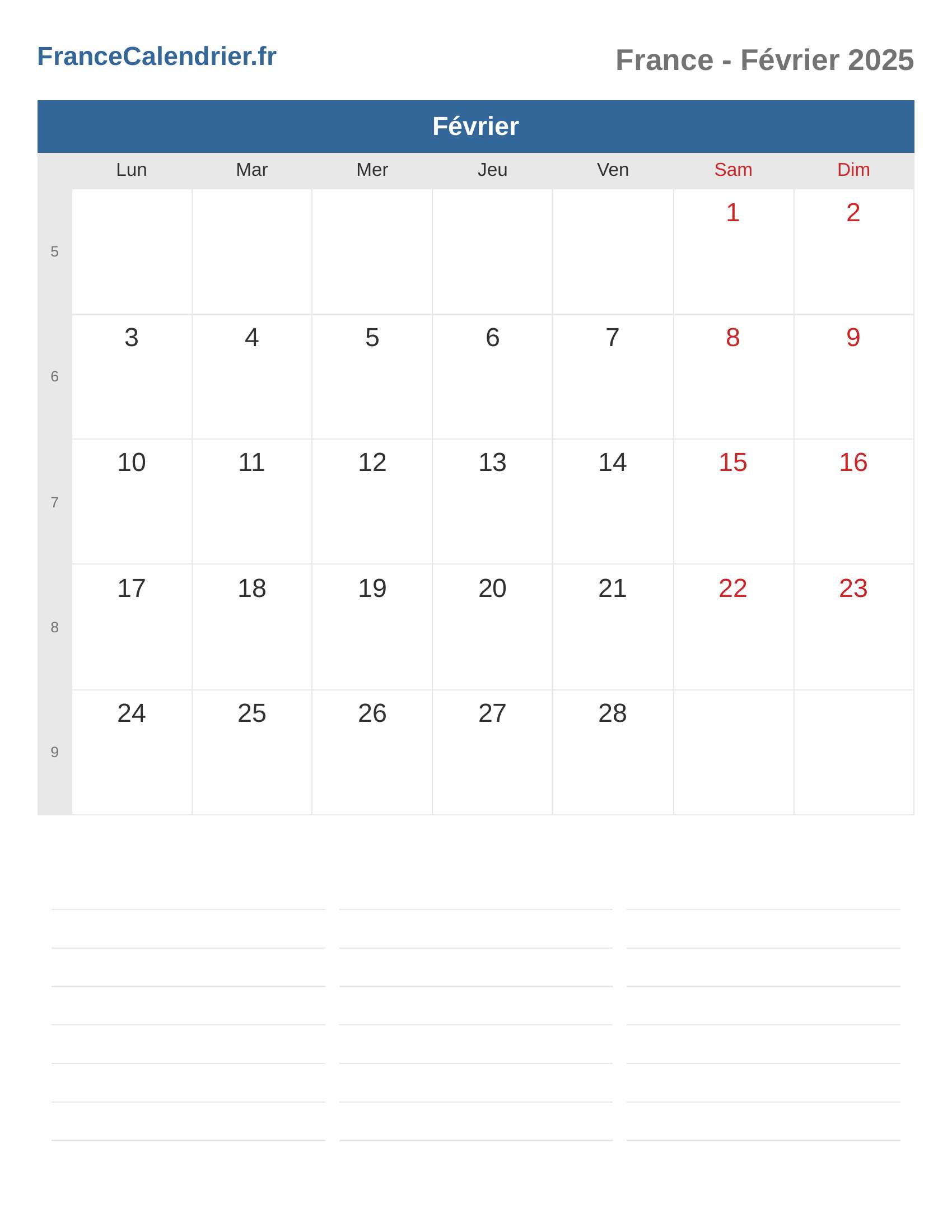 Calendrier Février 2025 - France