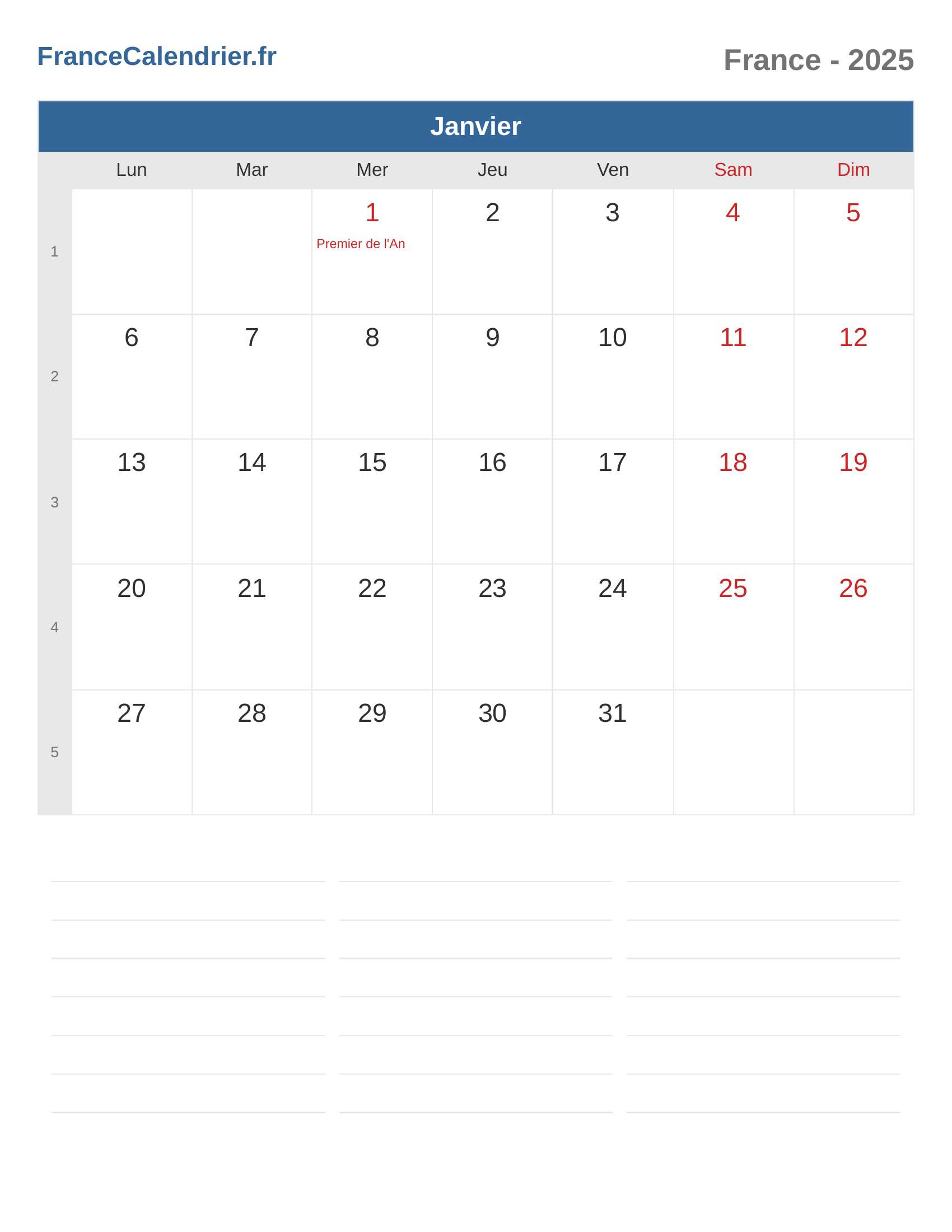 Calendrier du France 2025 - Janvier