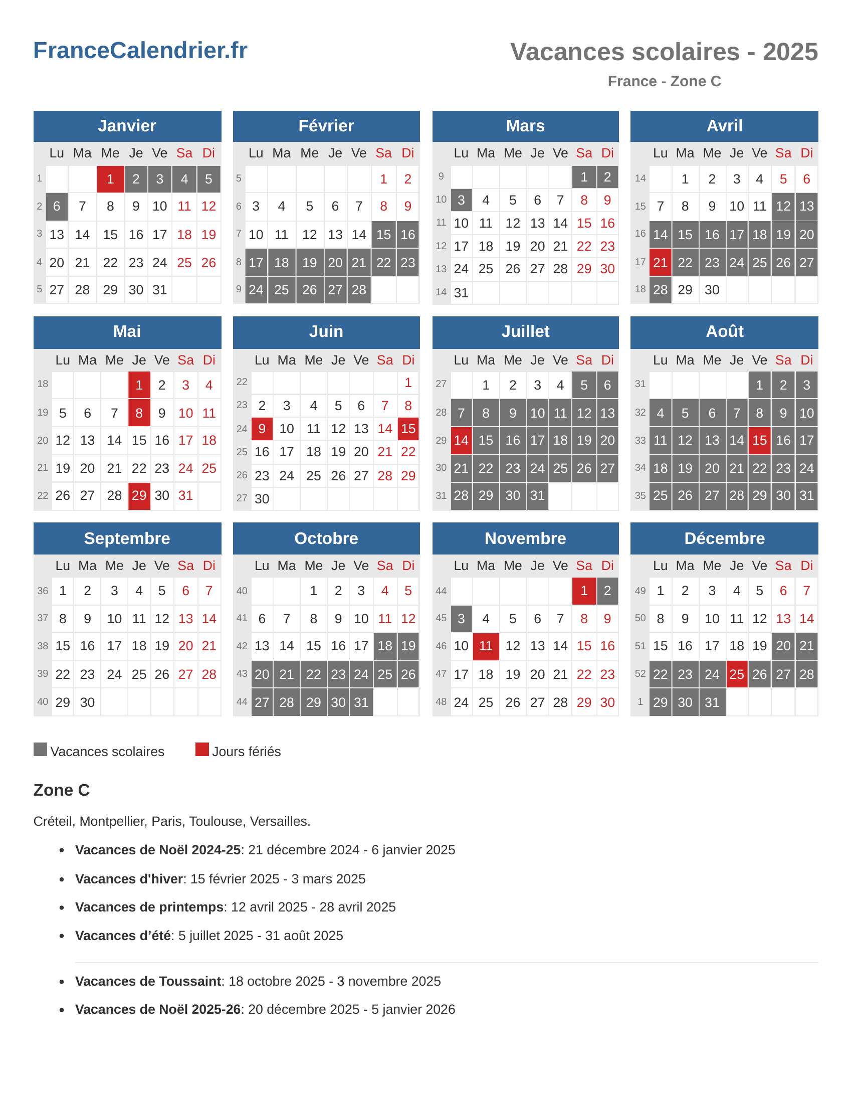 Vacances d'hiver: 22 février 2025 - 10 mars 2025