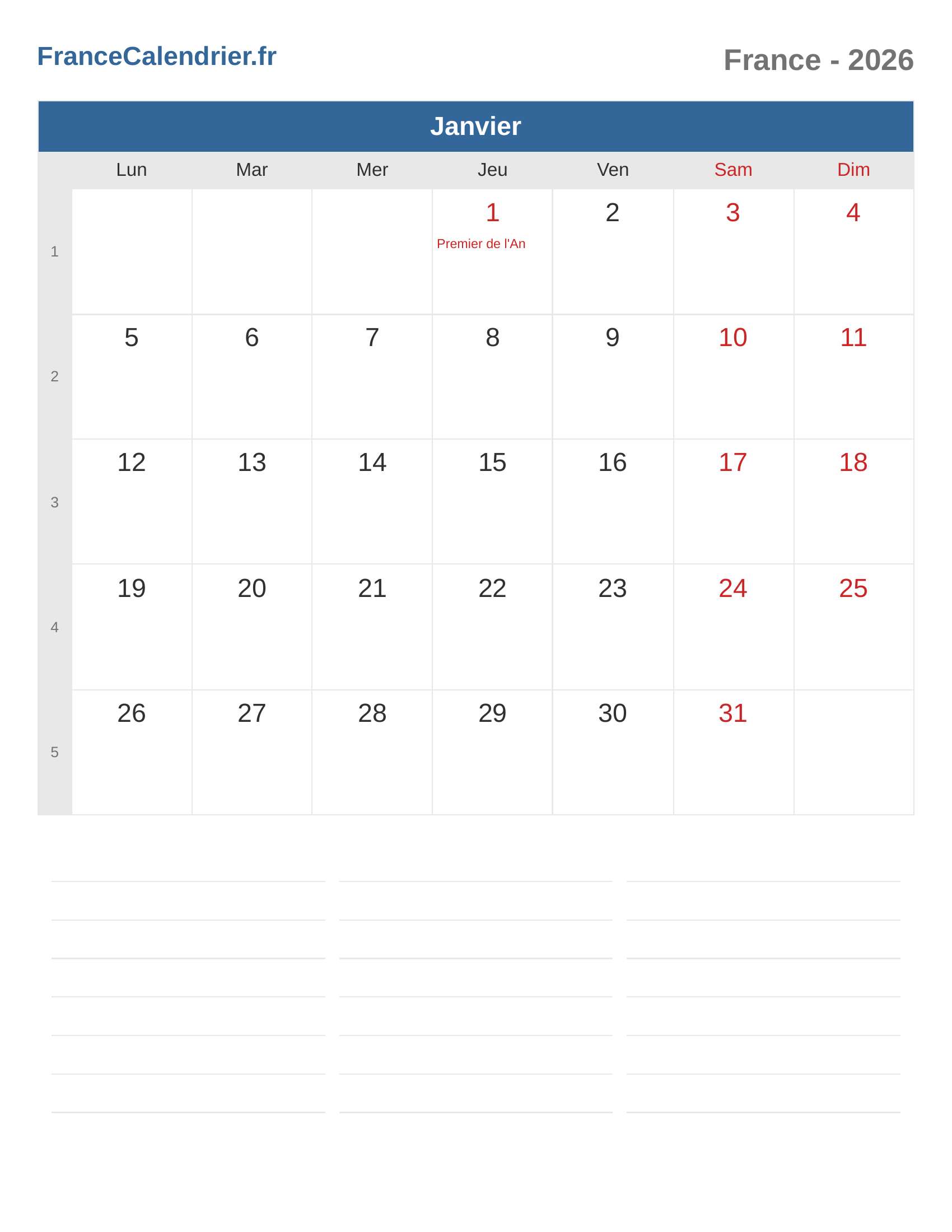 Calendrier du France 2026 - Janvier