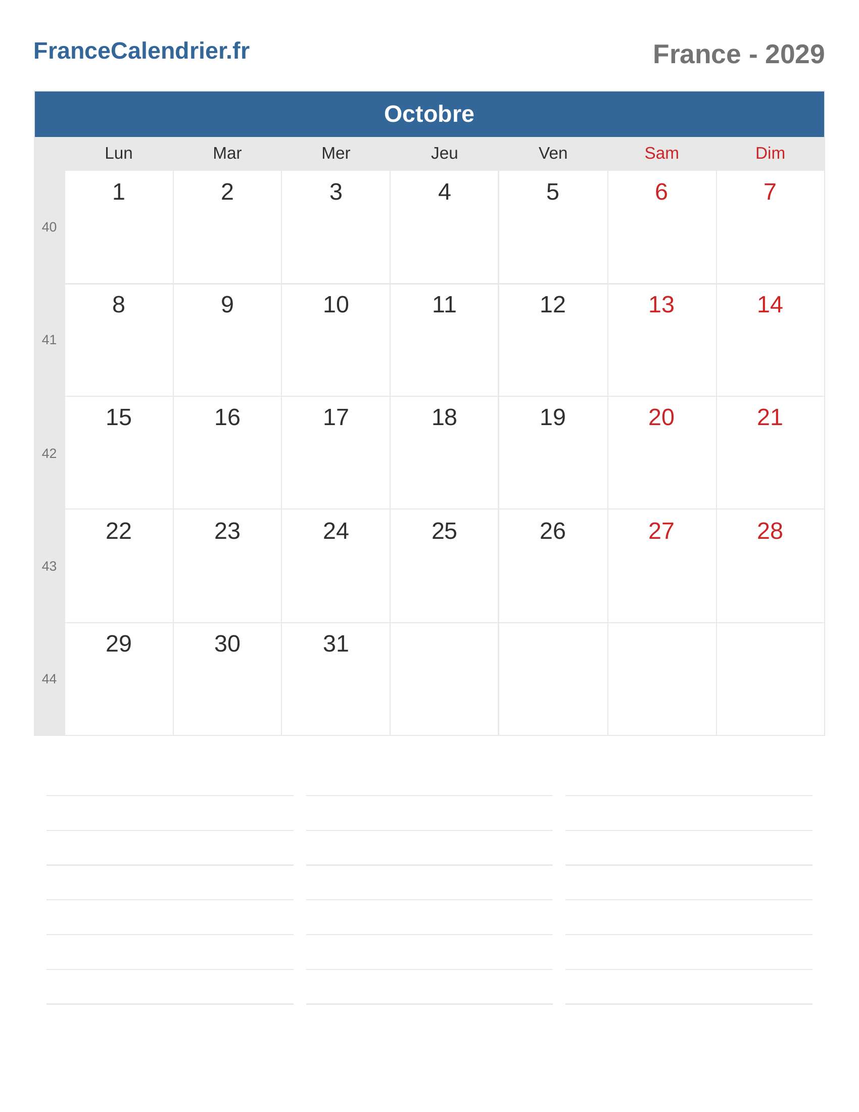 Calendrier Octobre 2029 - France